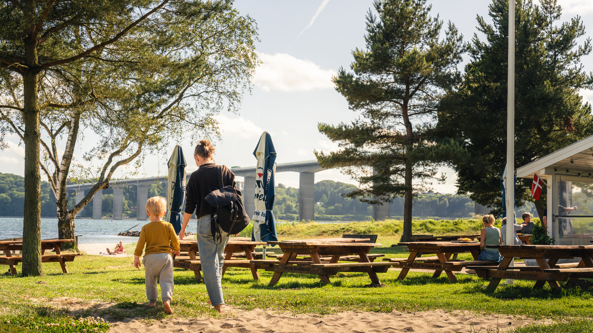Udover badestrand og børnestrand finder I legeplads, beach volley bane, fitness-pavillon, toiletter samt en kiosk med borde og bænke, hvor I kan nyde en isvaffel, drikkevarer eller lidt at spise.