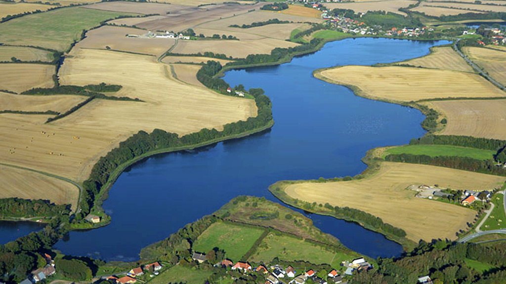 Mjels Sø har forbindelse til havet og derfor skal regler for statens fisketegn overholdes - www.fisketegn.dk