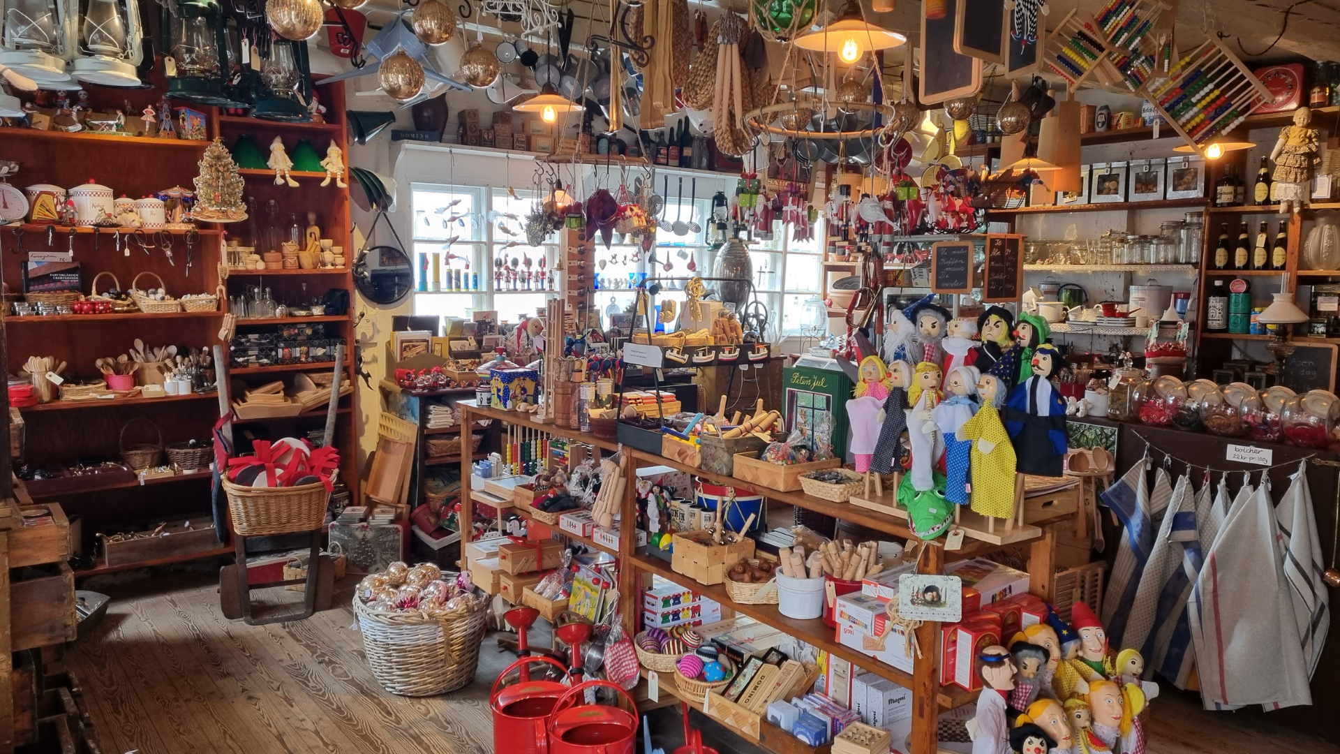 Høkeren ligger i en gammel bygning fra 1700-tallet, som er blevet nænsomt restaureret. I Høkeren gør vi en dyd ud af at kunne tilbyde et varesortiment, der er så autentisk som muligt. Fra gulv til loft er butikken fyldt med alle mulige varer – lige fra legetøj til spegesild. Kort sagt, en rigtig gammeldags ‘blandet landhandel’, der får én til at føle sig hensat til begyndelsen af 1900-tallet.