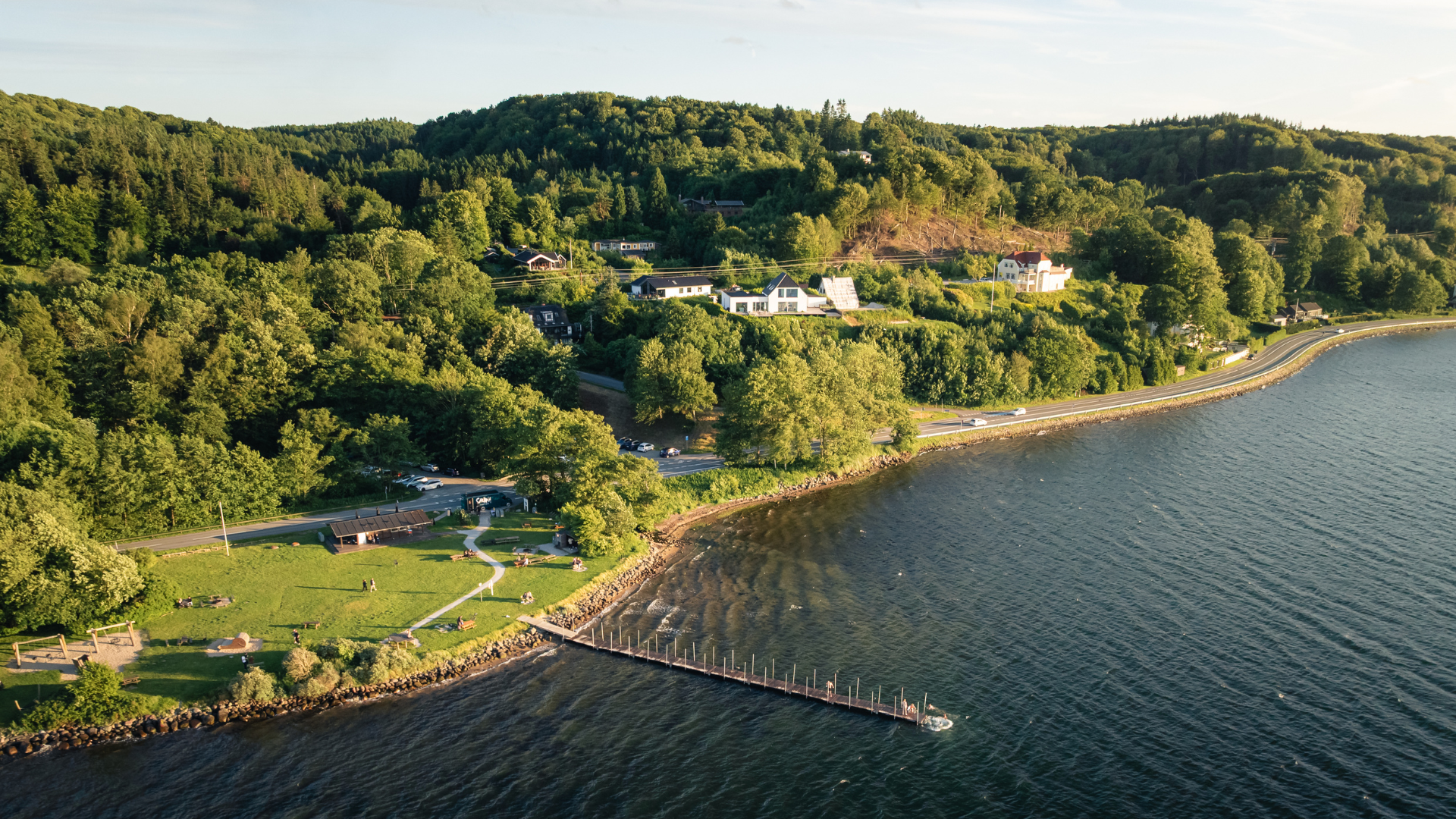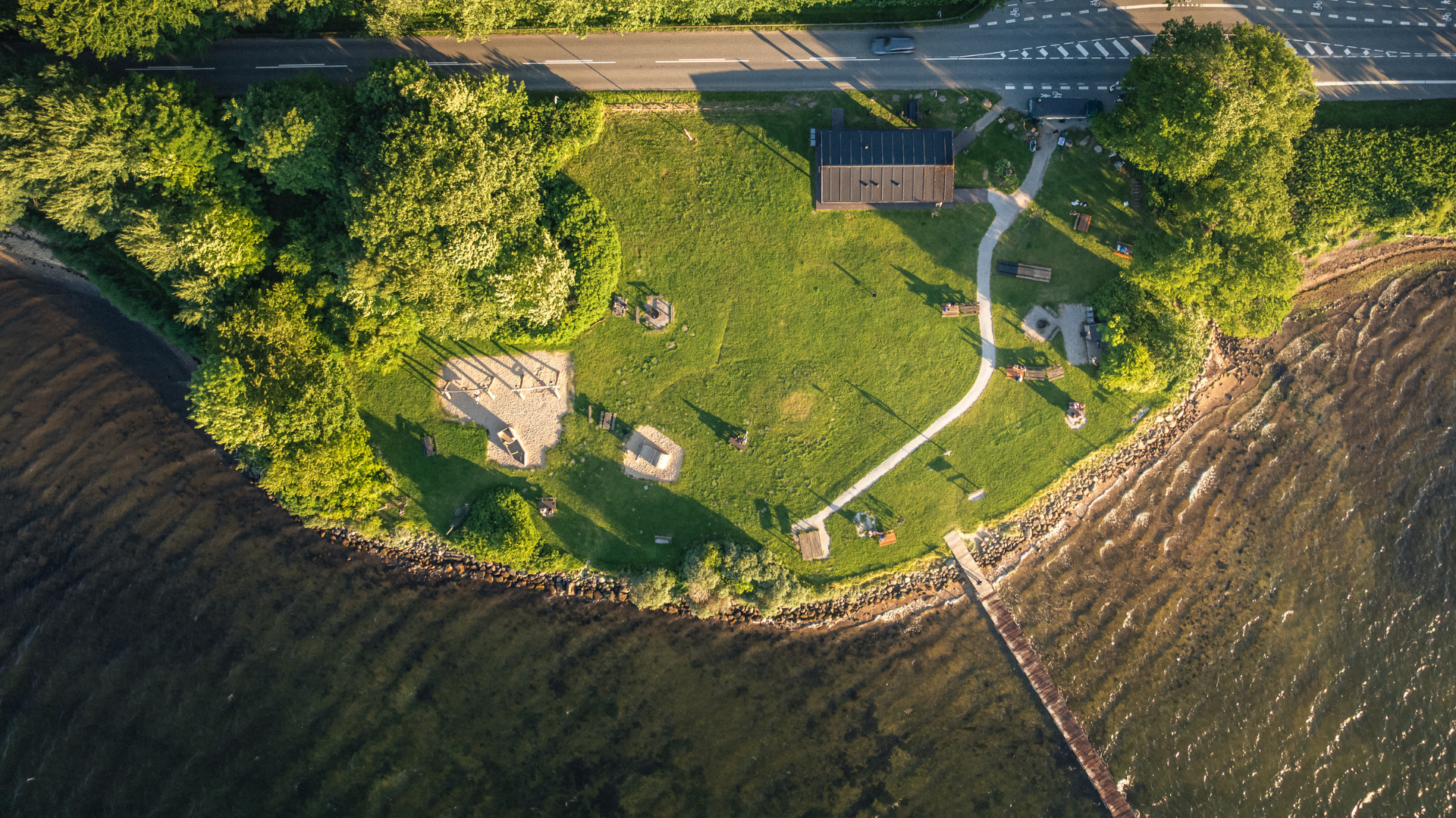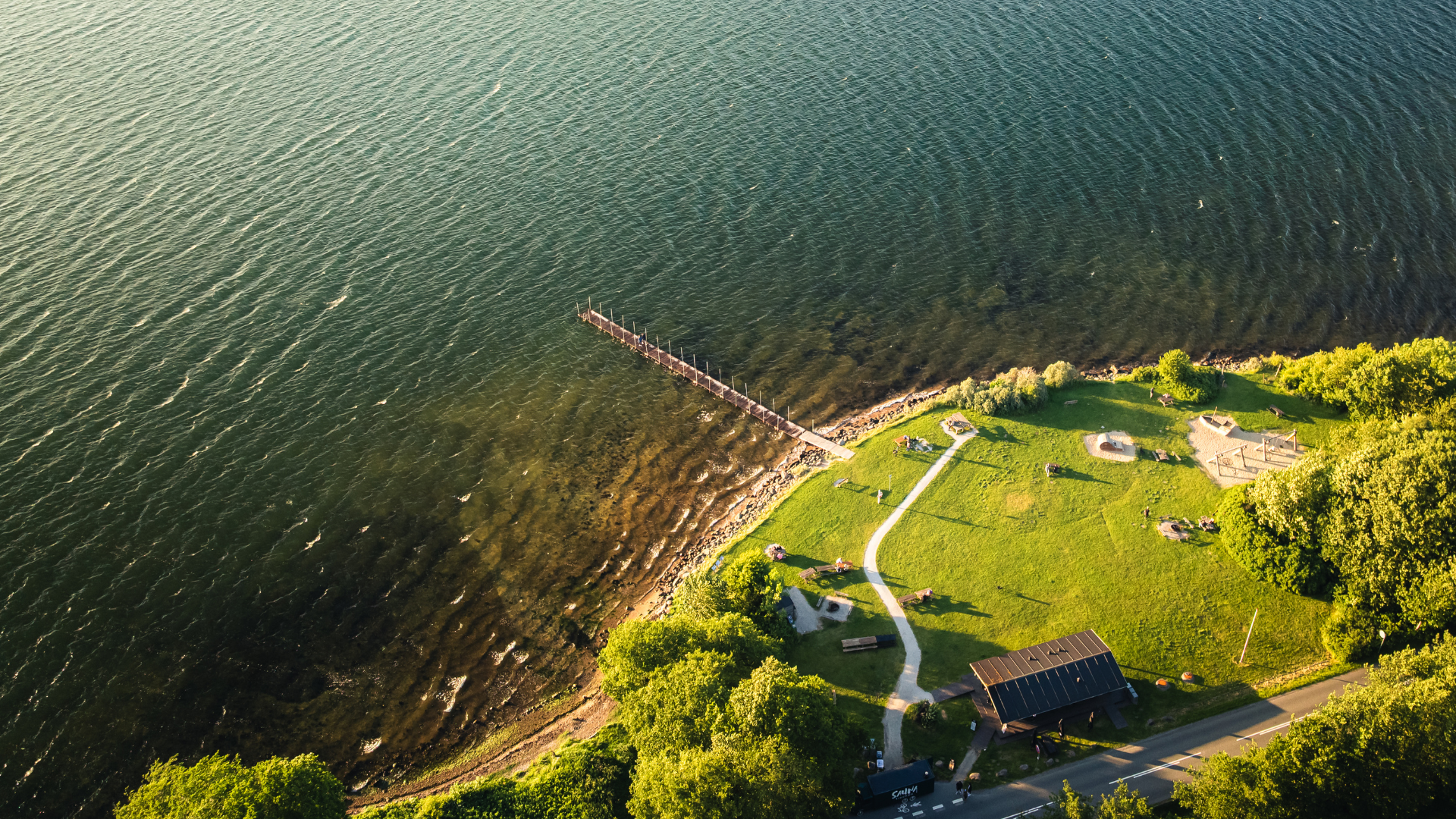 Ved stranden finder I et ishus/kiosk - Det Lille Ishus - og en legeplads med et sørøverskib, en strandet hval og hængekøjer. Der er desuden toiletter, grillsted, bålplads med brænde, borde og bænke. Her er altså god mulighed for at nyde madpakken med familien her og lade børnene lege på den store græsplæne.