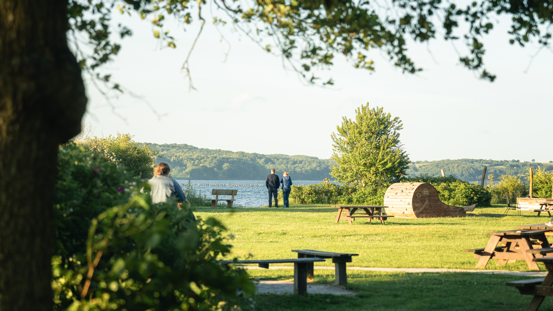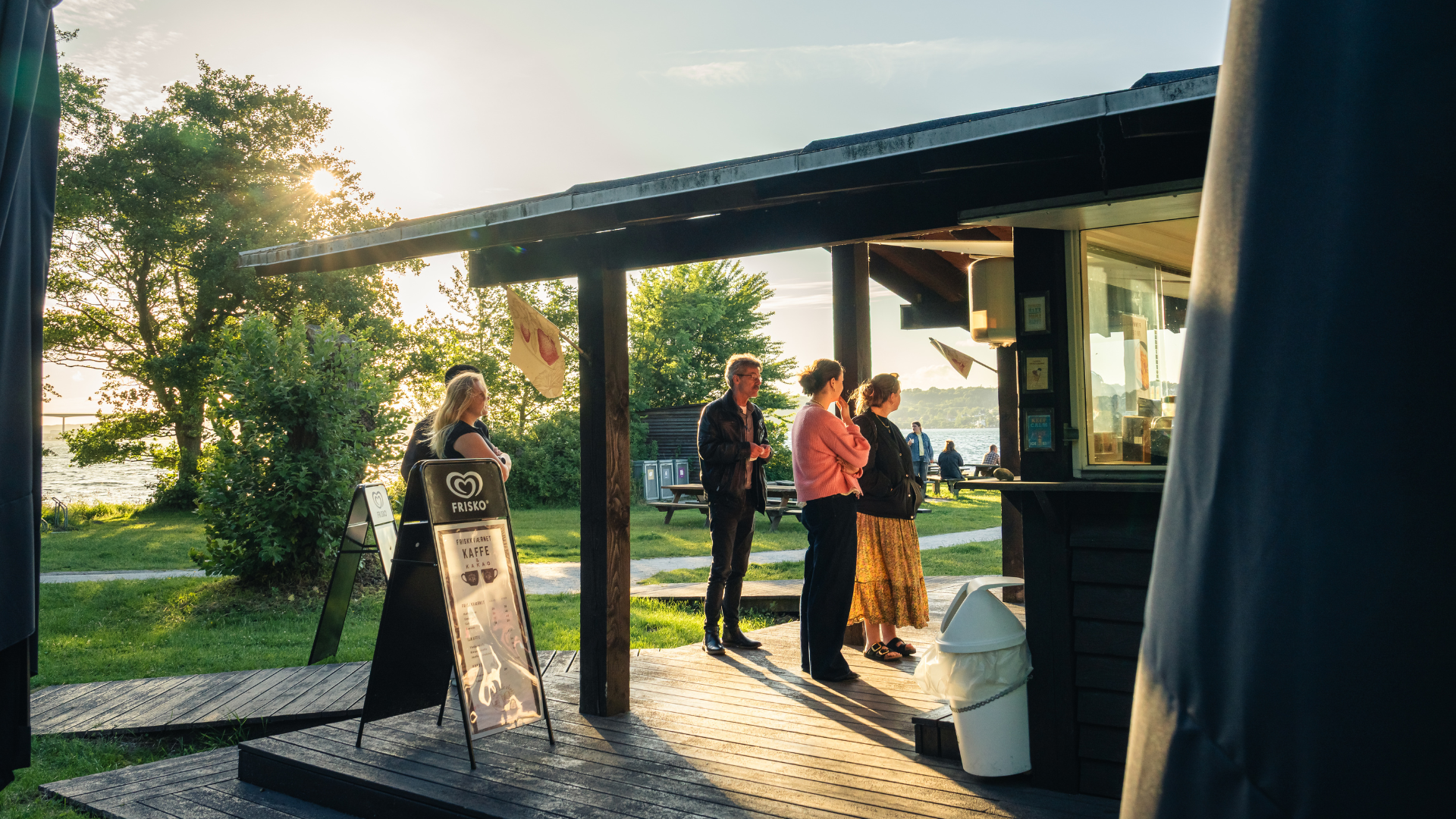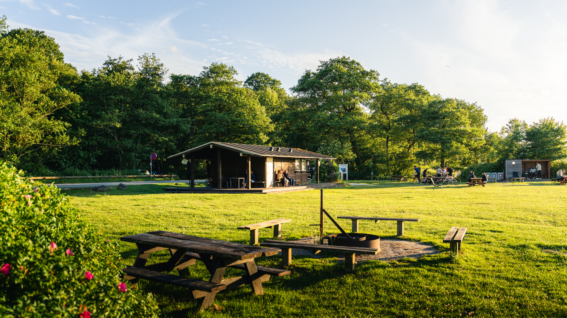 Ved stranden finder I et ishus/kiosk - Det Lille Ishus - og en legeplads med et sørøverskib, en strandet hval og hængekøjer. Der er desuden toiletter, grillsted, bålplads med brænde, borde og bænke. Her er altså god mulighed for at nyde madpakken med familien her og lade børnene lege på den store græsplæne.