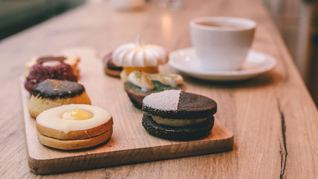 Hver dag er der otte småkager i disken, med hver deres egen historie, smag og udseende. Sortimentet skifter efter sæsonen, og småkagerne kan nydes som lidt sødt til kaffen eller som petit fours efter et middagsselskab.