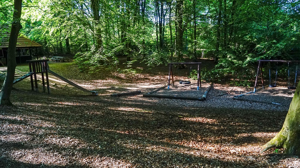 Når I har boltret jer på legepladsens aktiviteter, kan I gå en tur i det dejlige naturområde lige ved legepladsen, hvor I kan lege videre på naturlegepladsen, hilse på dådyrene i området og se de smukke karper svømme rundt i bassinet.