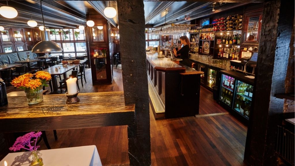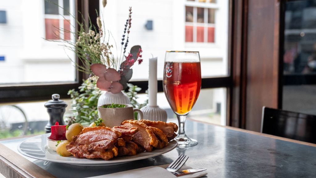 På menuen venter klassiske danske frokostretter som pariserbøf med æggeblomme og højtbelagt smørrebrød. Til maden kan du vælge blandt et bredt udvalg af øl – heriblandt fra lokale bryggerier.