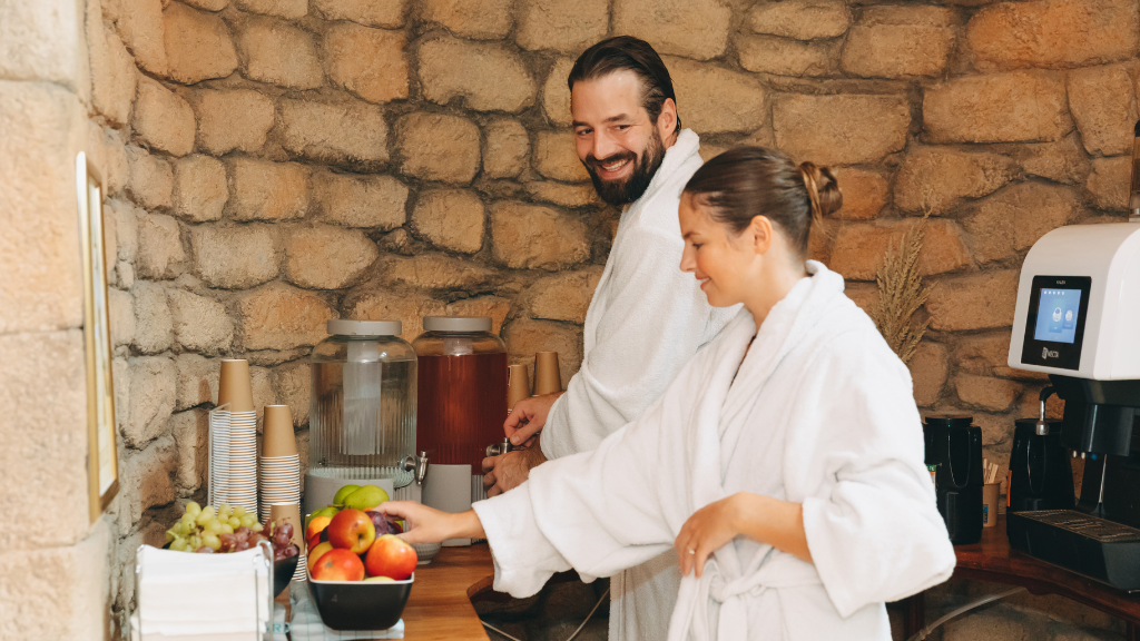I Romulus kan du starte din sanseoplevelse i de fire forskelligt tempererede termalbade, efterfulgt af koldtvandsbadet. Fortsæt derefter med en tur i det udendørs varmtvandsbassin med udsyn til Vesterhavet. Vælg mellem afslappende eller opkvikkende dufte i dampbadene. Slap af i hvilerummet til lyden af rislende vand og dæmpet afstressende musik eller få kroppen masseret igennem i jetmassagen, og så er der frisk frugt, saft og vand ad libitum. Prikken over i’et for den totale sanseoplevelse er en af de mange velværebehandlinger, som personalet i Romulus tilbyder. Tidsbestilling for behandling anbefales.
