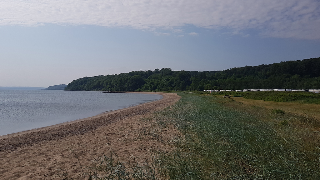Her i de hyggelige omgivelser kan du besøge denne lille badestrand. Stranden er omtrent fem meter bred, men flere hundrede meter lang, så der er god plads, og badegæsterne kan ligge i fred og ro. Du er velkommen til at benytte den fine badebro.