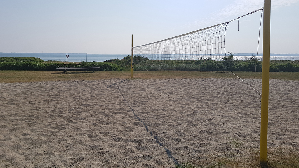 Bag stranden ligger et græsareal med bord/bænkesæt samt plads til ophold og boldspil. Der er beachvolleybane, fodboldmål og basketnet.