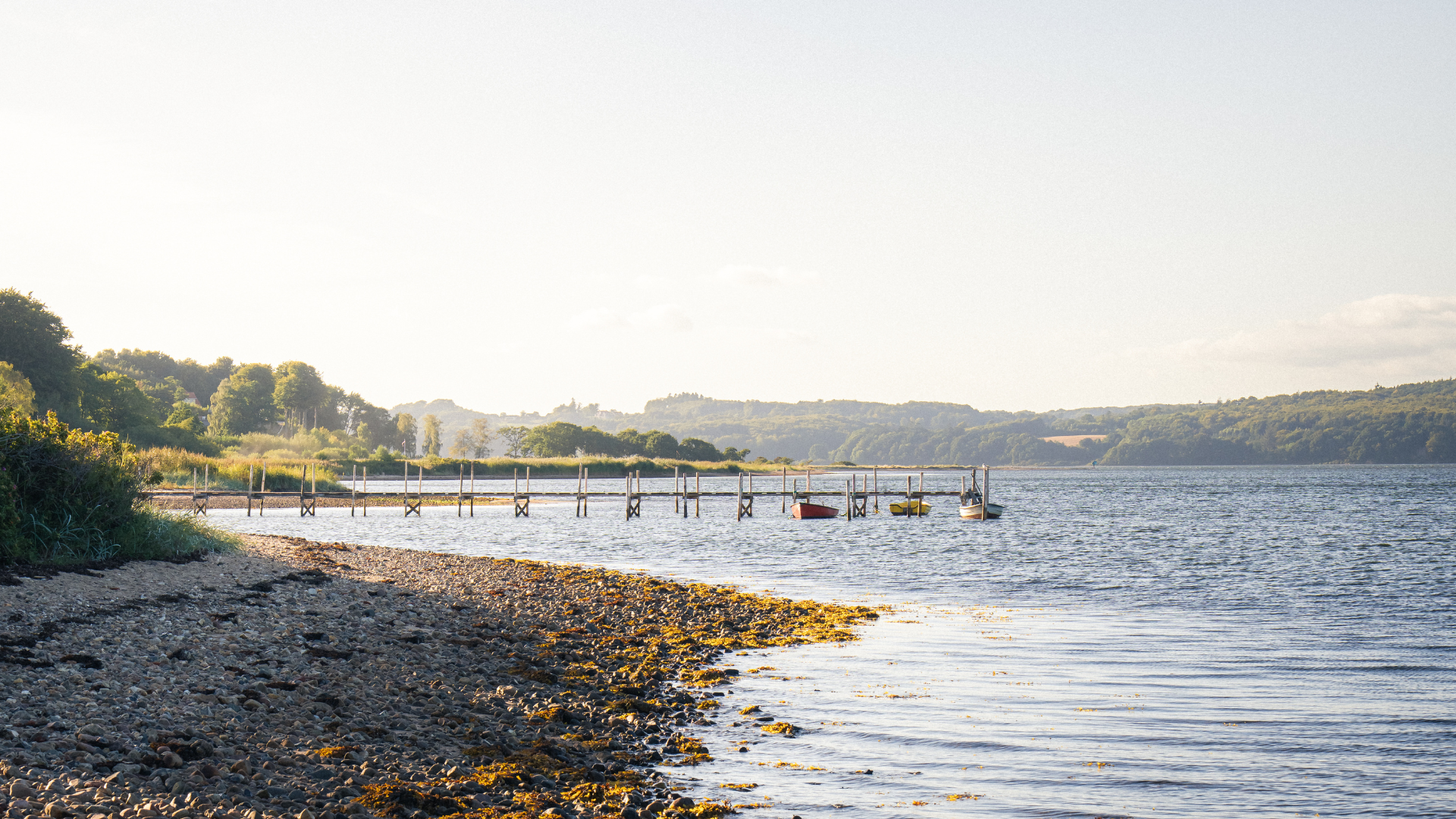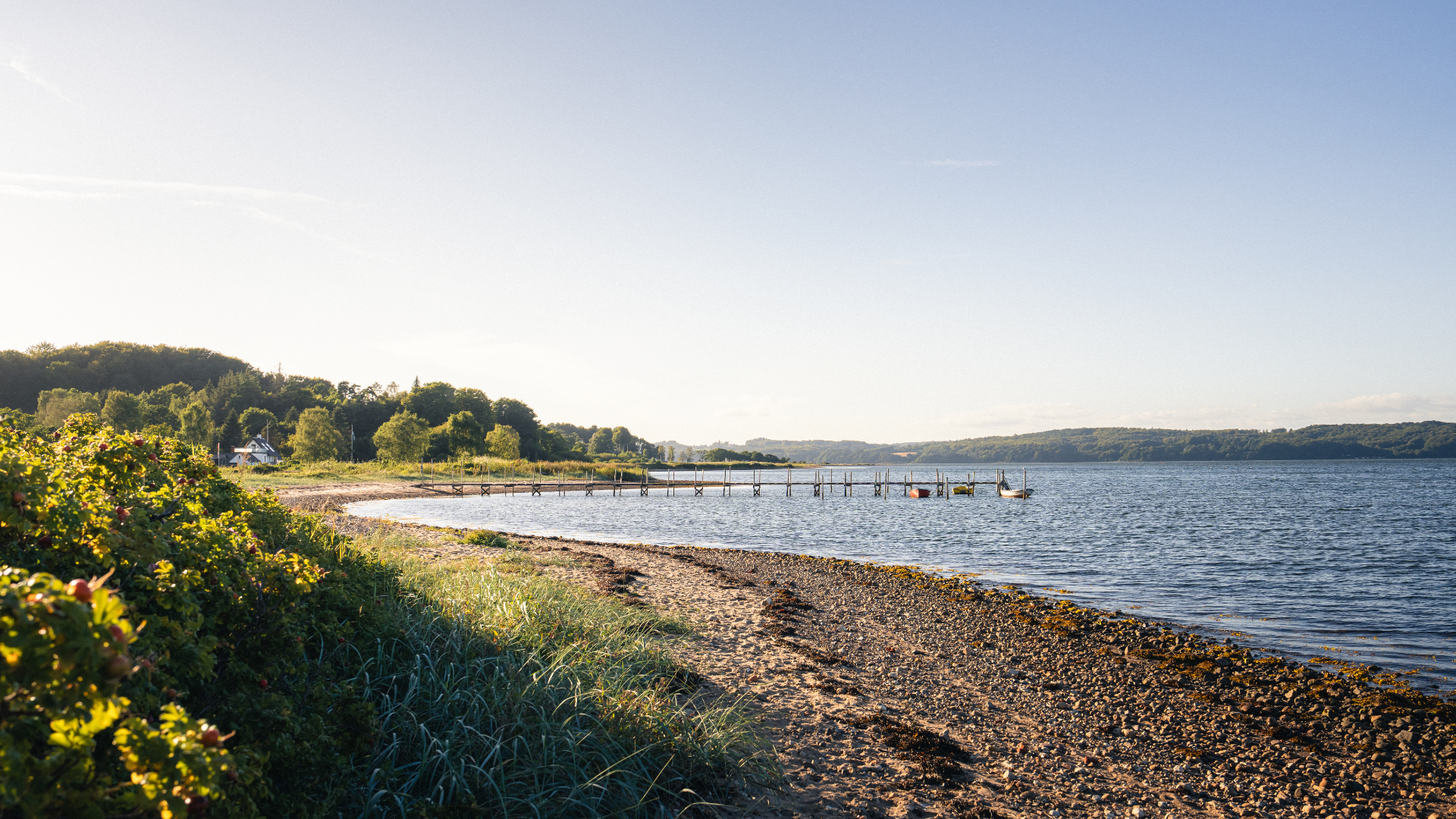 Der er gode parkeringsmulighed i kort afstand til stranden samt en badebro. Fra stranden er der udsigt til Daugård Strand på den anden side af fjorden.