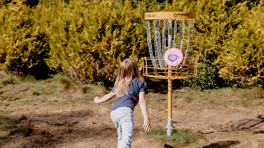 Discgolf er simpelt forklaret golf, hvor køller og kugler er skiftet ud med særlige frisbees, kaldet discs. I stedet for huller i jorden kaster man efter metalkurve.