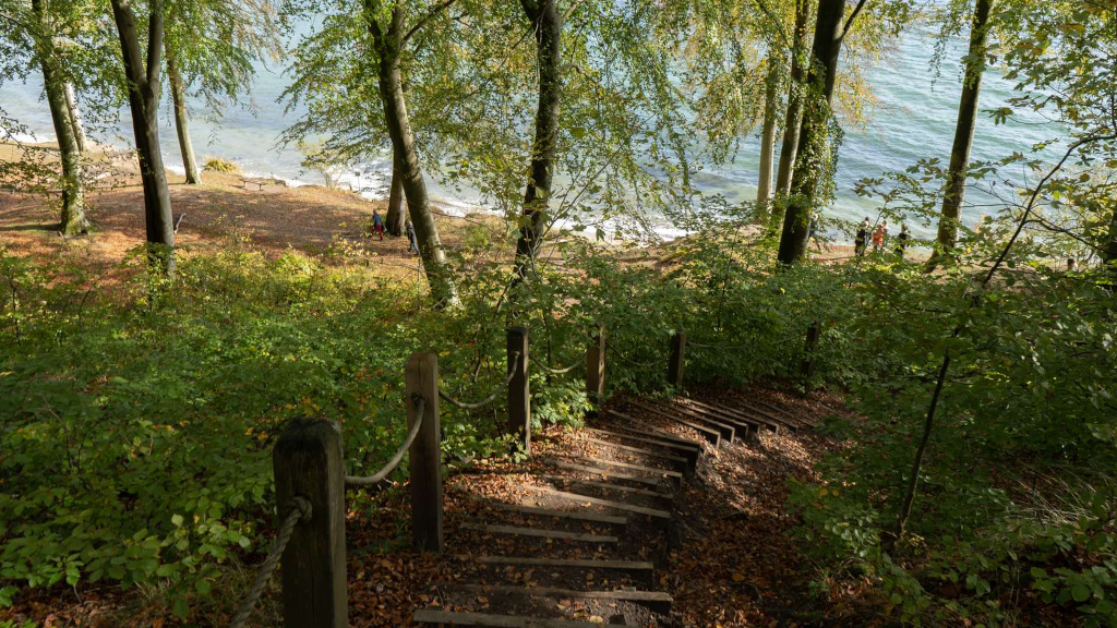 Du kan gå en tur på den cirka tre kilometer lange strand, men vær opmærksom på, at du sandsynligvis skal kravle over væltede træer. Det plastiske ler i skrænterne kan ved store regnskyl og tøbrud suge så meget vand, at den pludselig skrider ned mod vandet og river store træer med sig i faldet. Da Staksrode Skov er urørt skov, får træerne lov til at ligge – her får naturen lov at råde. De ekstraordinære forhold gør stranden til et ideelt sted at finde fossiler.