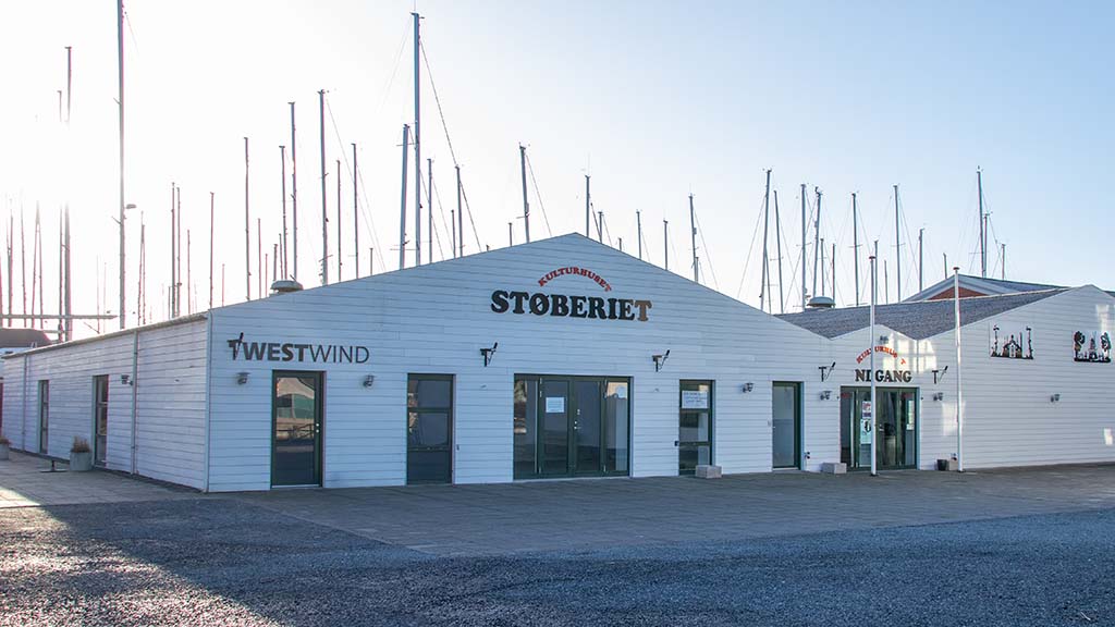 Kulturhuset Støberiet ligger på den gamle havn i Bogense. Her var der engang plaststøberi og fabrikshaller