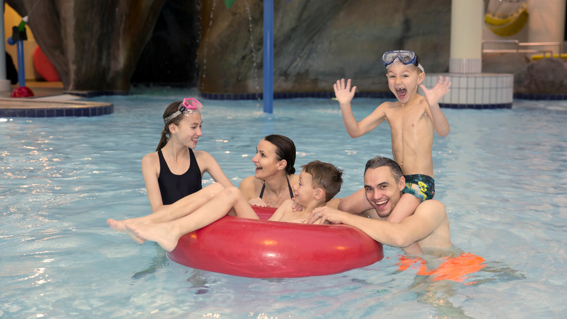 Et eldorado for vandhunde. 78 meter lang rutsjebane og mindre bredbane for de yngste gæster. Vandkanoner, grotter, boblezoner, modstrømskanaler, spande vandfald og hyggelige siddeområder Svømmehal med udspringsskamler og 25 meter svømmebaner. Sauna, saunagus, dampbad og stor spa. Særligt opvarmet børnebassin.