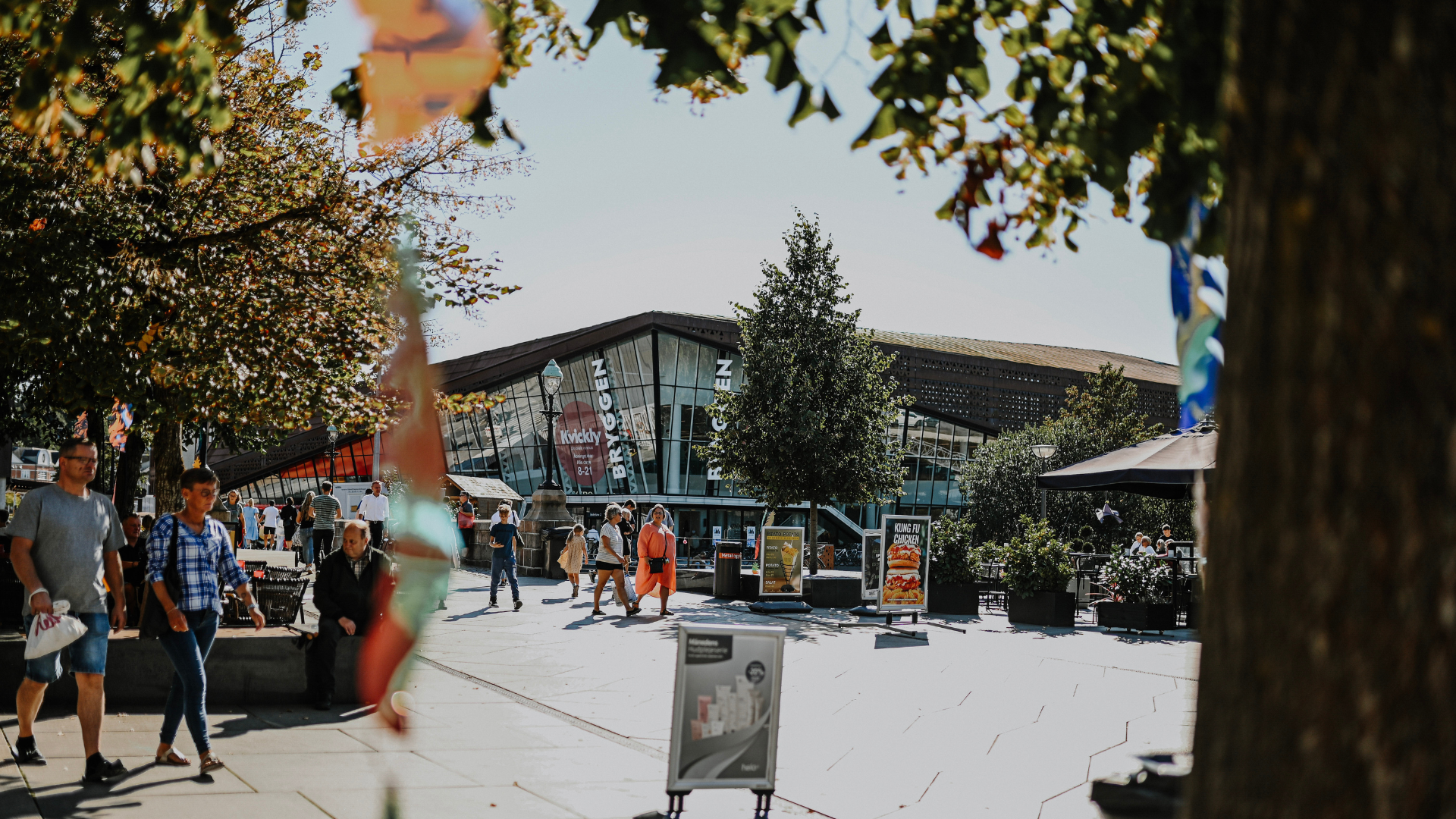 På Søndertorv, i den sydlige del af gågaden, byder citycenter Bryggen indenfor med 60 forretninger – og 700 p-pladser på taget.