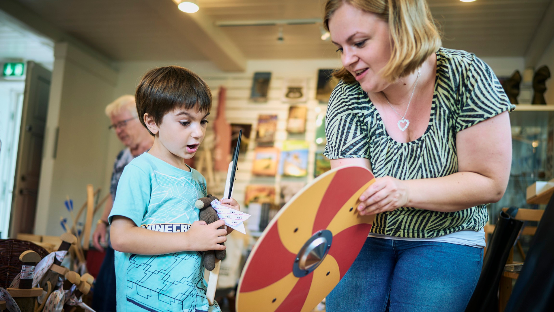 I Vikingemuseet Ladbys museumsbutik kan man købe en lang række lækre varer med vikingetiden som tema. Butikken tilbyder et stort udvalg af smykker, mjød, bøger, legetøj og andre vikingesouvenirs.
